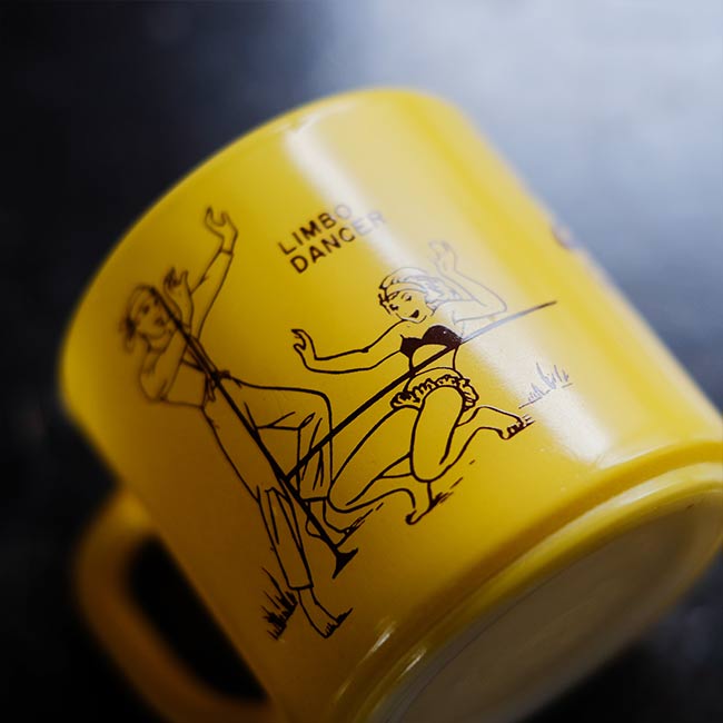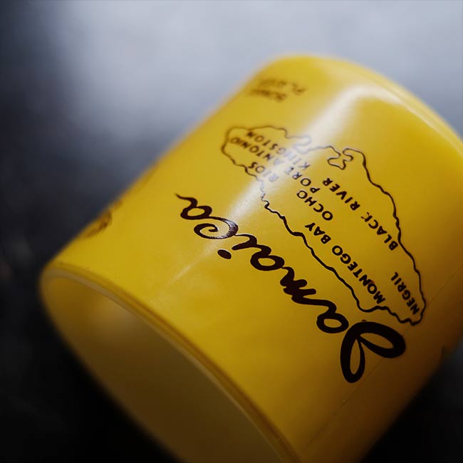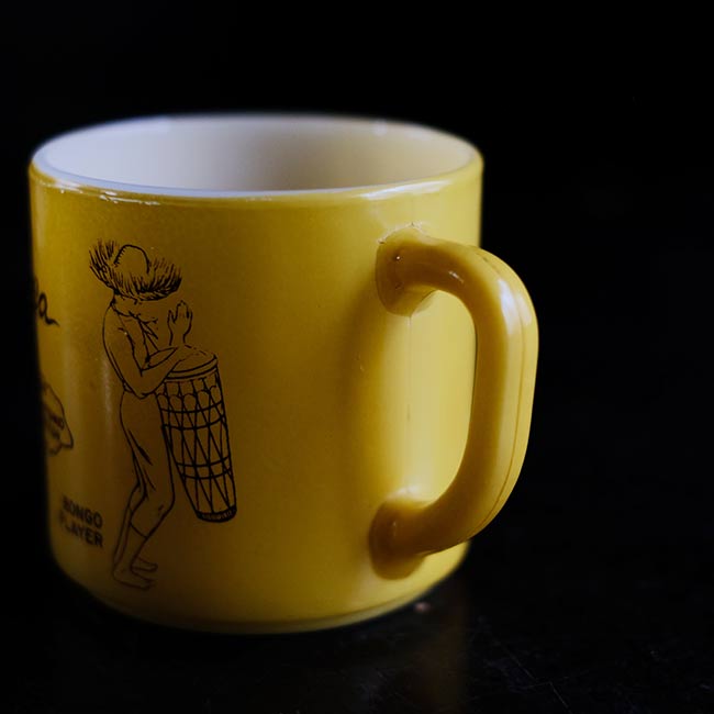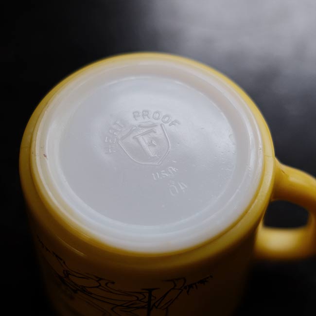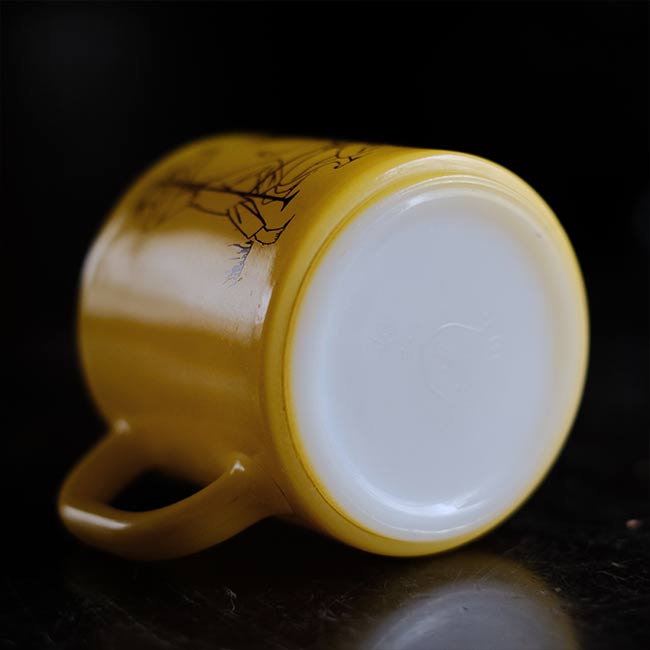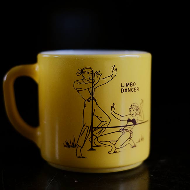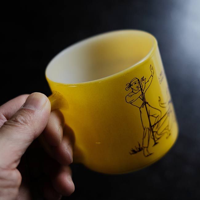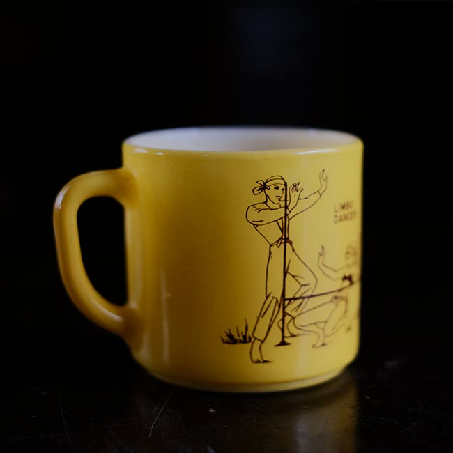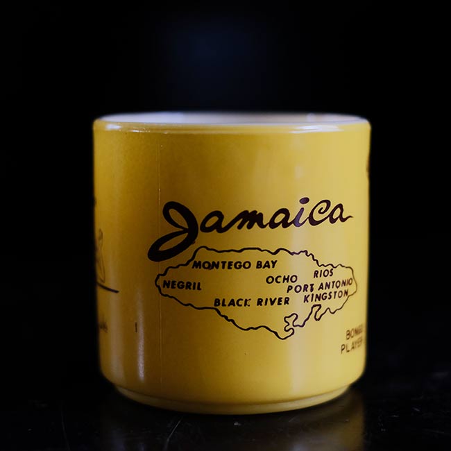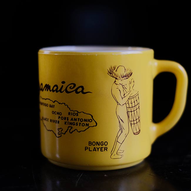 企業やキャラクターなどとのコラボが多く、絵柄が無数に存在するFederal(フェデラル)のミルクガラスのマグカップ。こちらはジャマイカに関する絵柄が入っております。