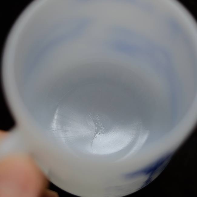 縁に微細なチップがありますが、鋭くないため、ご使用いただく上で支障はありません。その他、側面に小キズが見られますが、さほど目立たないかなと。